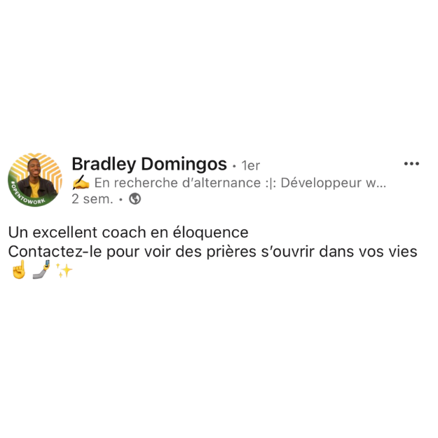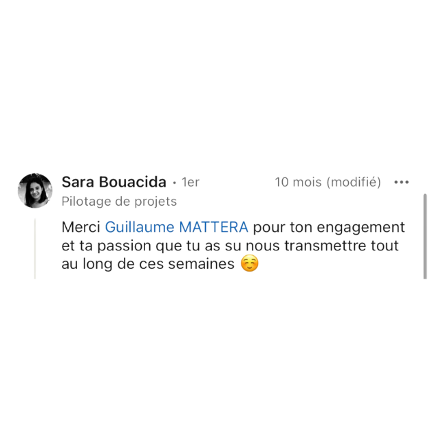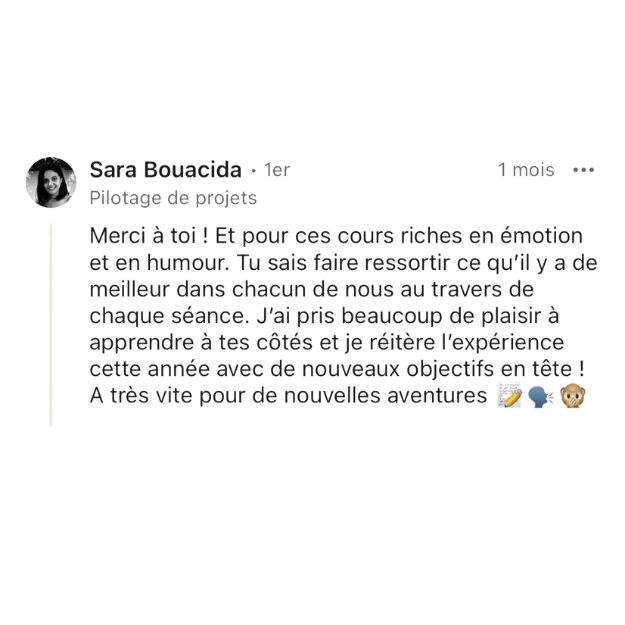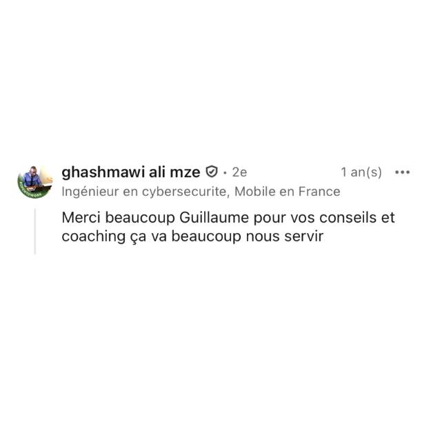 Ma plus grande satisfaction, c'est la vôtre. Je suis ravi de vous présenter ici les retours directs de ceux que j'ai eu la chance d'accompagner.